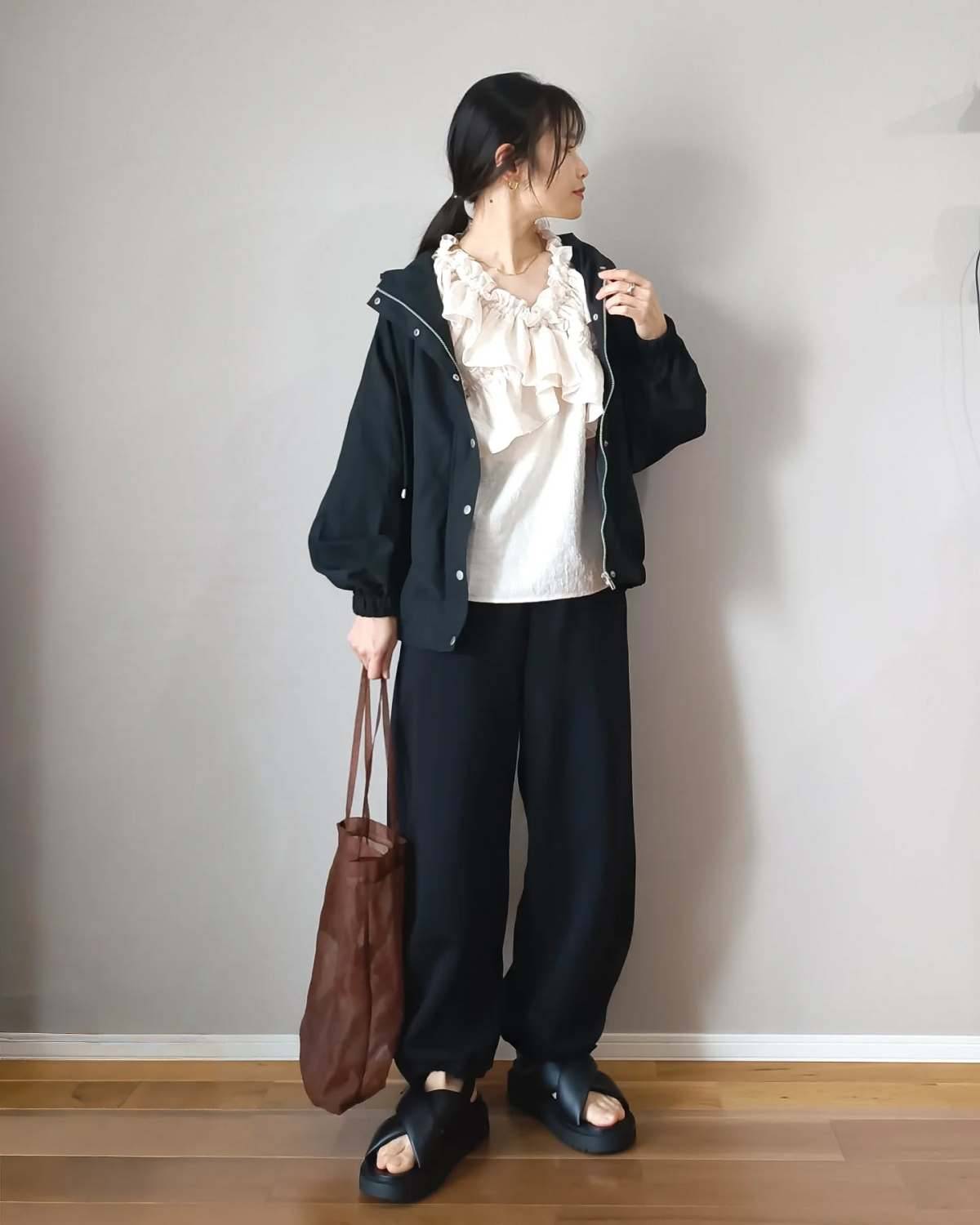 【10月編】ダサ見えしないブラウスコーデ①ブルゾンを羽織る♪