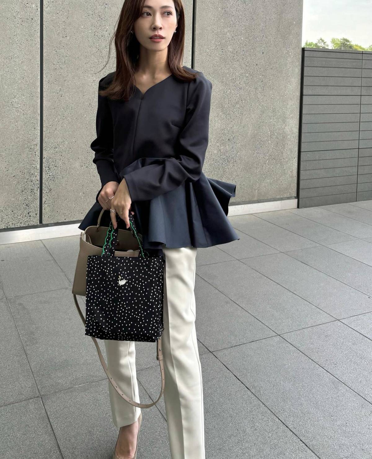 【10月編】ダサ見えしないブラウスコーデ③ペプラムブラウス×パンツ