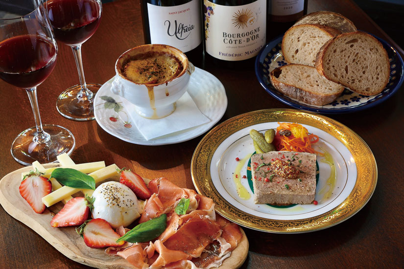 旧軽井沢・六本辻にあるレストラン「RUZE classique」シェフが手がける軽食とともに、心ゆくまでお酒とおしゃべりを楽しめます。軽井沢駅から国道18号をはさんで徒歩ですぐという立地も魅力。新幹線に乗る前や仕事終わりなど、ふらりと立ち寄るのにもぴったりです。