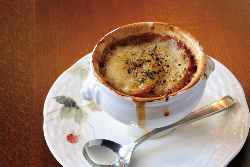 玉ねぎをじっくり炒めシンプルに仕上げた「オニオングラタンスープ」