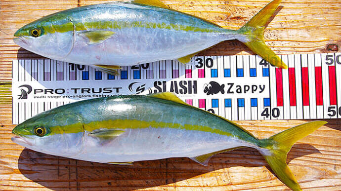 11月8日、福岡市中央区港かもめ広前からSEASONが玄界灘の落とし込み釣りに出船。ヒラマサ4~5kgをキャッチし、ほかヤズが多数ヒット。エサ付けが厳しい中でも、ヒラマサやヤズがヒットしており、土産は十分にキープしている。