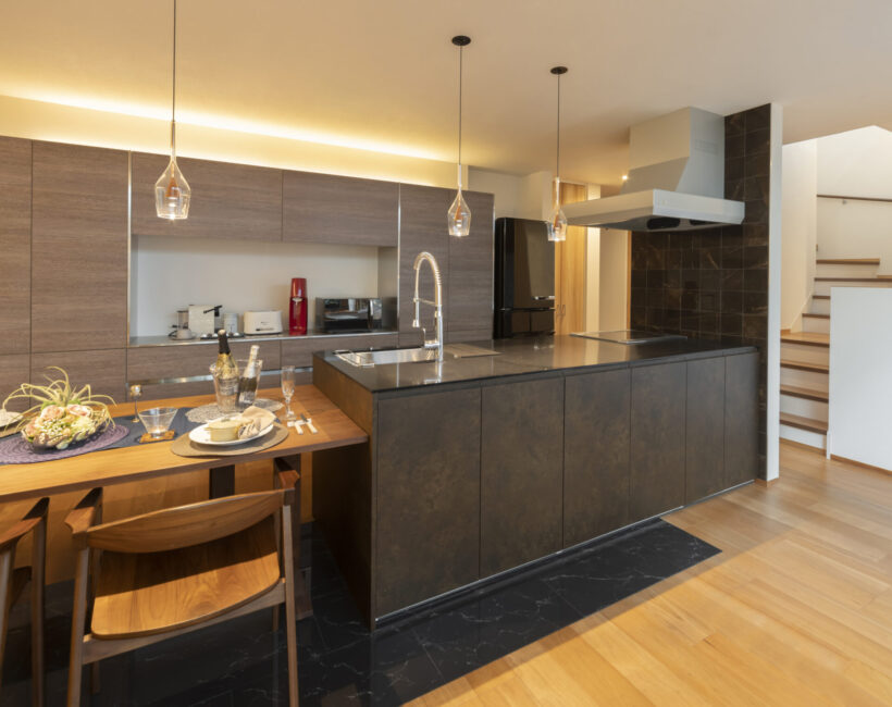 同社の象徴的な取り組みの一つが「オリジナルキッチン」の開発である。住宅設備メーカーの標準仕様ではなく、空間全体の一体感を追求し、家具としての存在感を持たせたデザインが特徴だ。住宅の中で、来訪者の目に最初に入るLDK空間の質を決める要素として、キッチンが果たす役割は大きい。