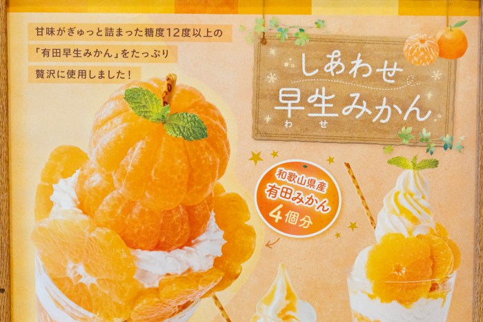 ジョナサンによると、今回使われているのは、有田みかんの早生みかんだという。早生みかんは温州みかんの品種の1つで、早生みかんは和歌山県産みかんのブランドの1つだ。