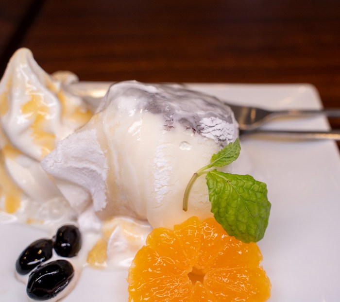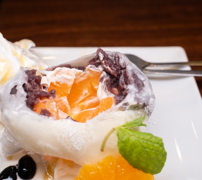 なるほど。みかん大福に、ソフトクリームが乗っていて、そこにテクいオレンジソースがかかっている感じか。