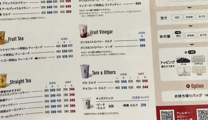 ミルクティー系にフルーツティー系、ジェラッティーはジェラートのようなものか。そしてタロってなんダロ??