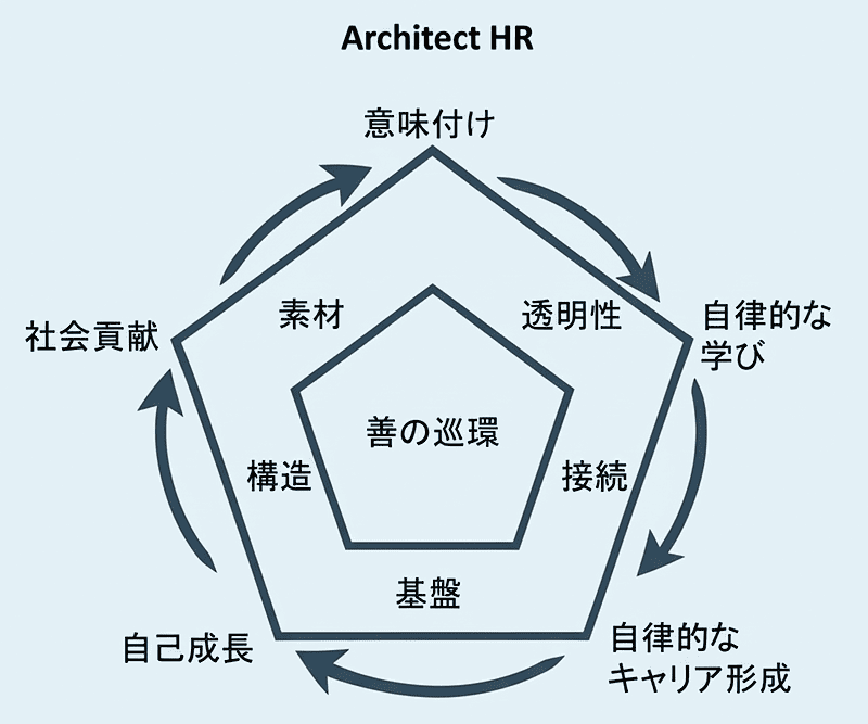「Architect HR」は、以下のような5つの柱で展開し、社員のキャリア設計と組織成長を促進する。