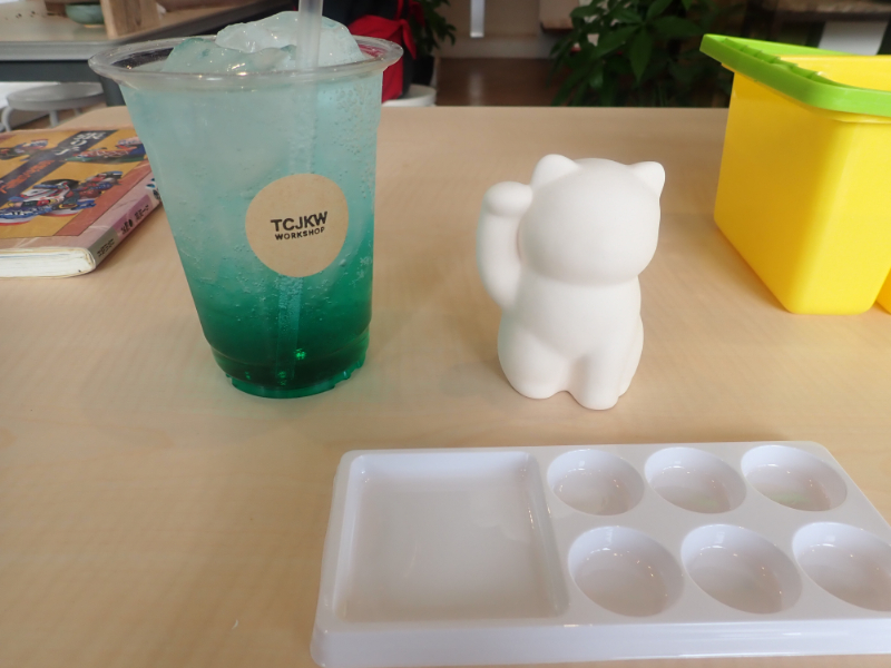 TCJKW ワークショップでは「招き猫」と「だるま」の2種類が用意されており、好きな方1つを選んで自由に色を塗っていきます。