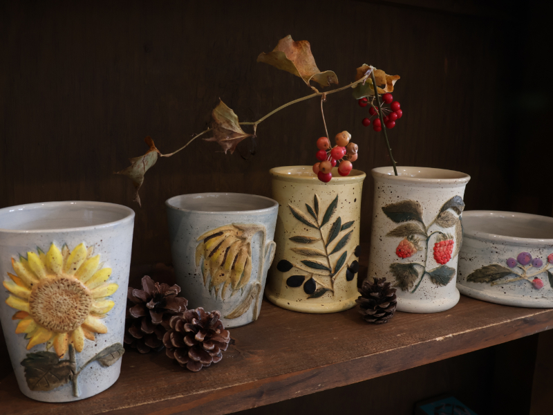 陶芸家である4人全員の作品のテイストがまったく異なるため、まるで小さな美術館に来たような感覚です。