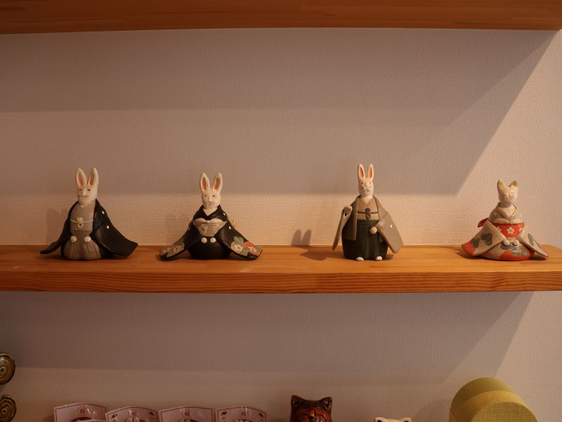 ウサギたちの置物は見ているだけで和んでしまう、やわらかいタッチで顔が表現されていました。