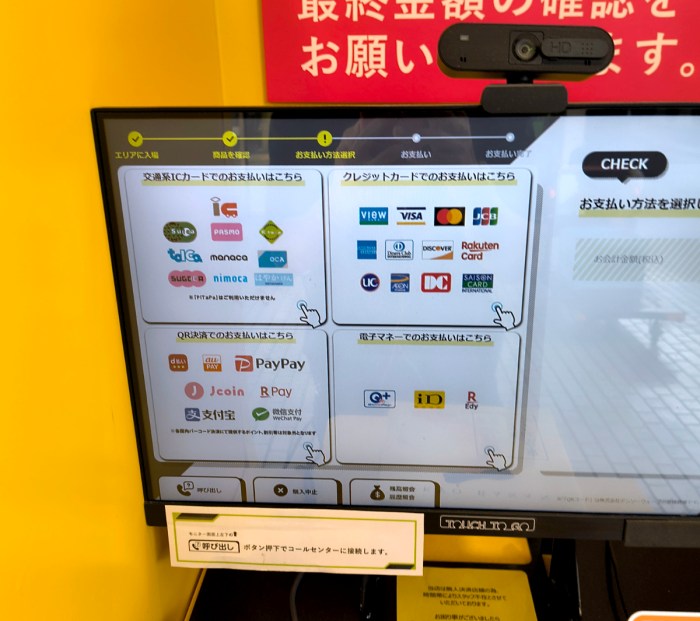 決済は現金不可、その代わり、クレジットやQR決済、ICカード・電子マネーに対応している。