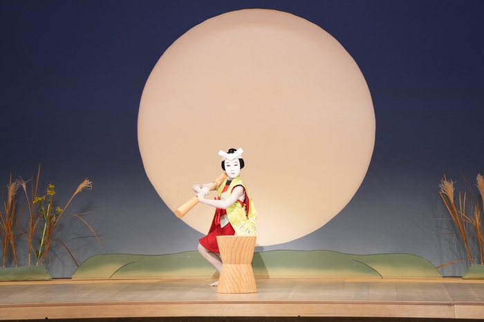 続いては、尾上菊之助の襲名披露狂言となる『玉兎』。大きな月の中から杵を携えて現れた兎は、「かちかち山」を題材に、狸や老爺、老婆など、さまざまな人物を踊り分ける。菊之助の可愛いらしい兎の踊り姿に、客席も和やかな雰囲気に包まれた。