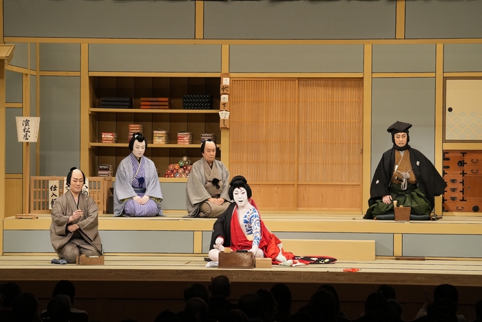 夜の部の幕開きは、代表的な「曽我狂言」の一つ『寿曽我対面』。中村梅玉が工藤左衛門祐経、曽我十郎を片岡孝太郎、曽我五郎を片岡愛之助が勤めた。血気盛んな五郎と一本芯の通った十郎、そして懐の深さを見せる工藤のやり取りや、歌舞伎の様式美にあふれた舞台に観客は引き込まれた。尾上菊之助演じる鬼王一子菊若丸が現れると、客席からは大きな拍手が沸き起こった。祝祭劇にふさわしいひと幕となった。