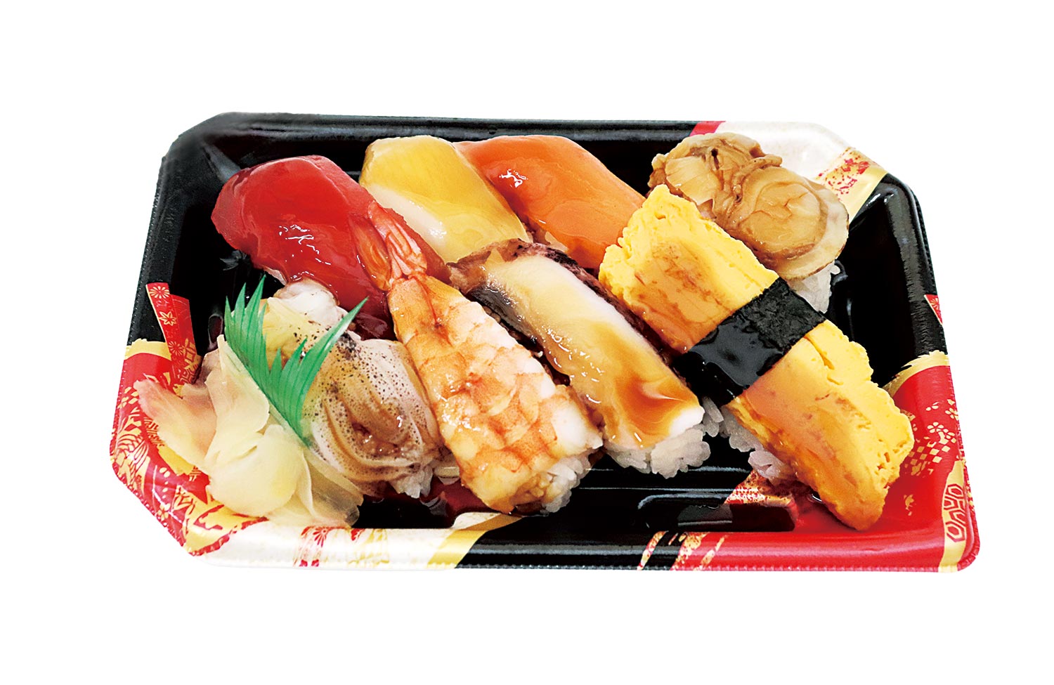 『オギノ』訪問で、最初にチェックすべきは「かいじ寿司」。普通の握りと半々ぐらいの割合で寿司売り場に並んでいるので、市民の好みも半々なのでしょう。