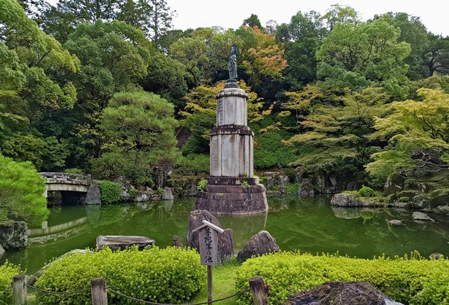 境内北にある女坂を下った三門手前にある友禅苑は、友禅染の祖・宮崎友禅生誕300年を記念して、昭和29年(1954)に改修造園された庭園です。
