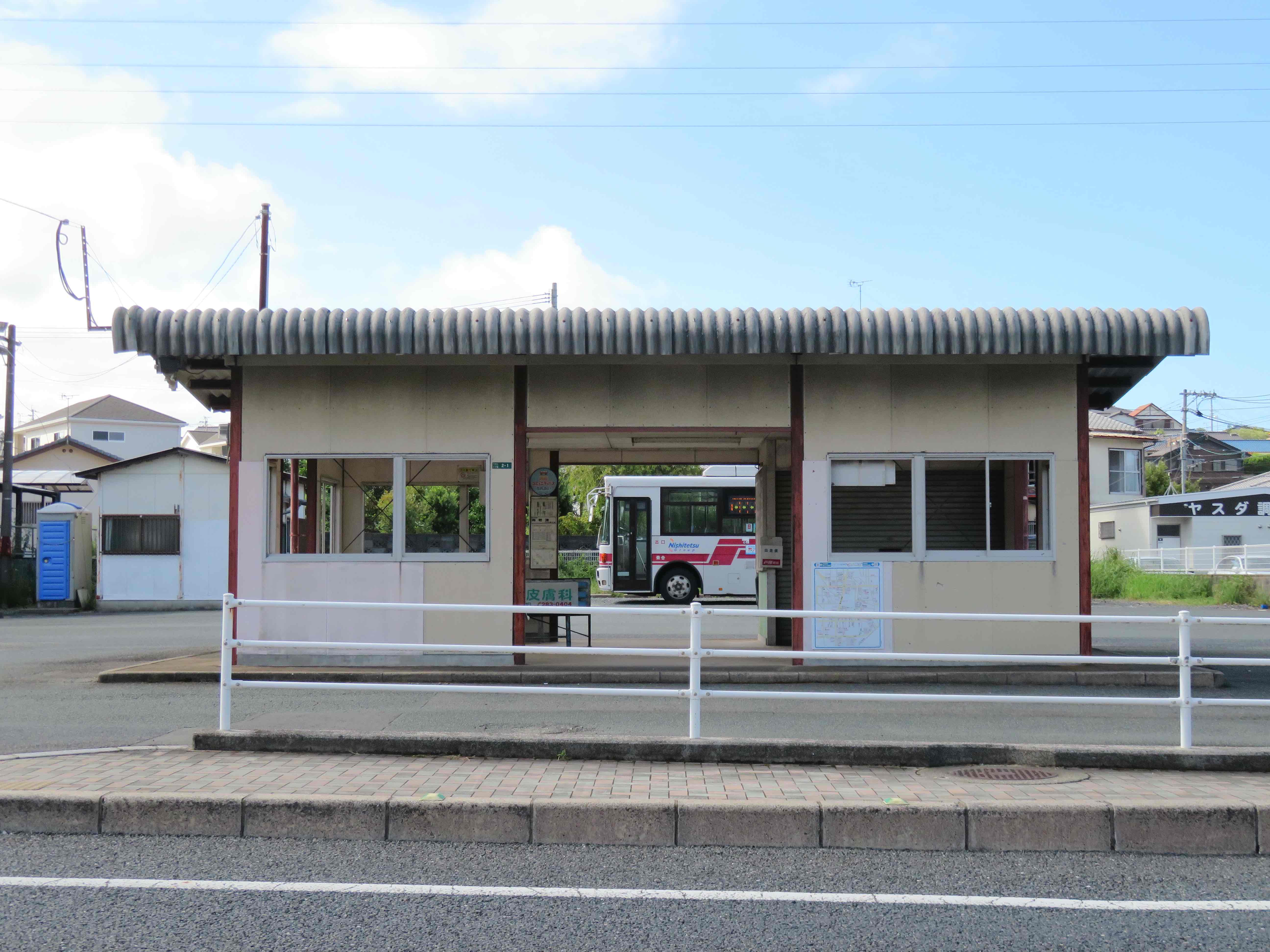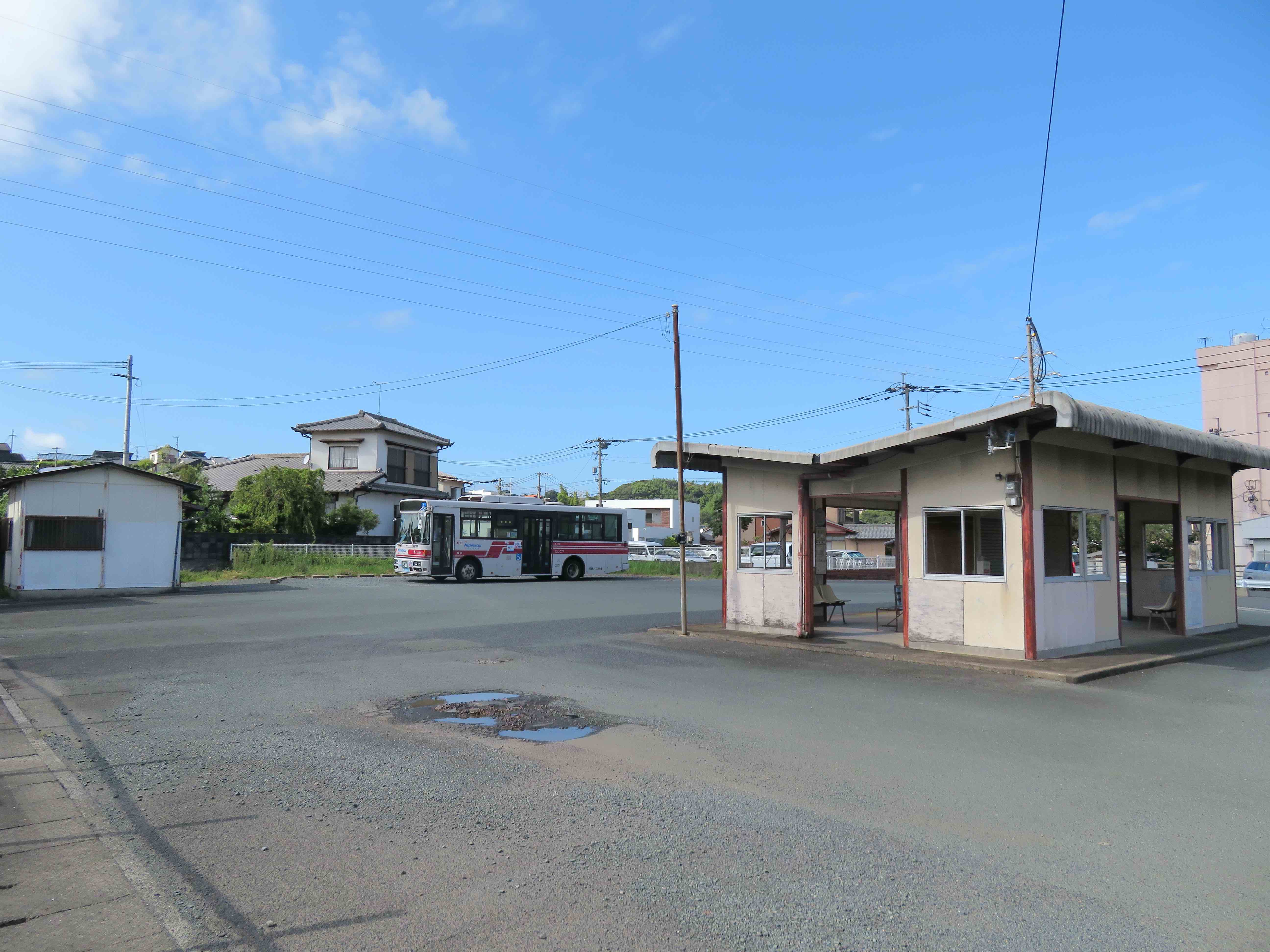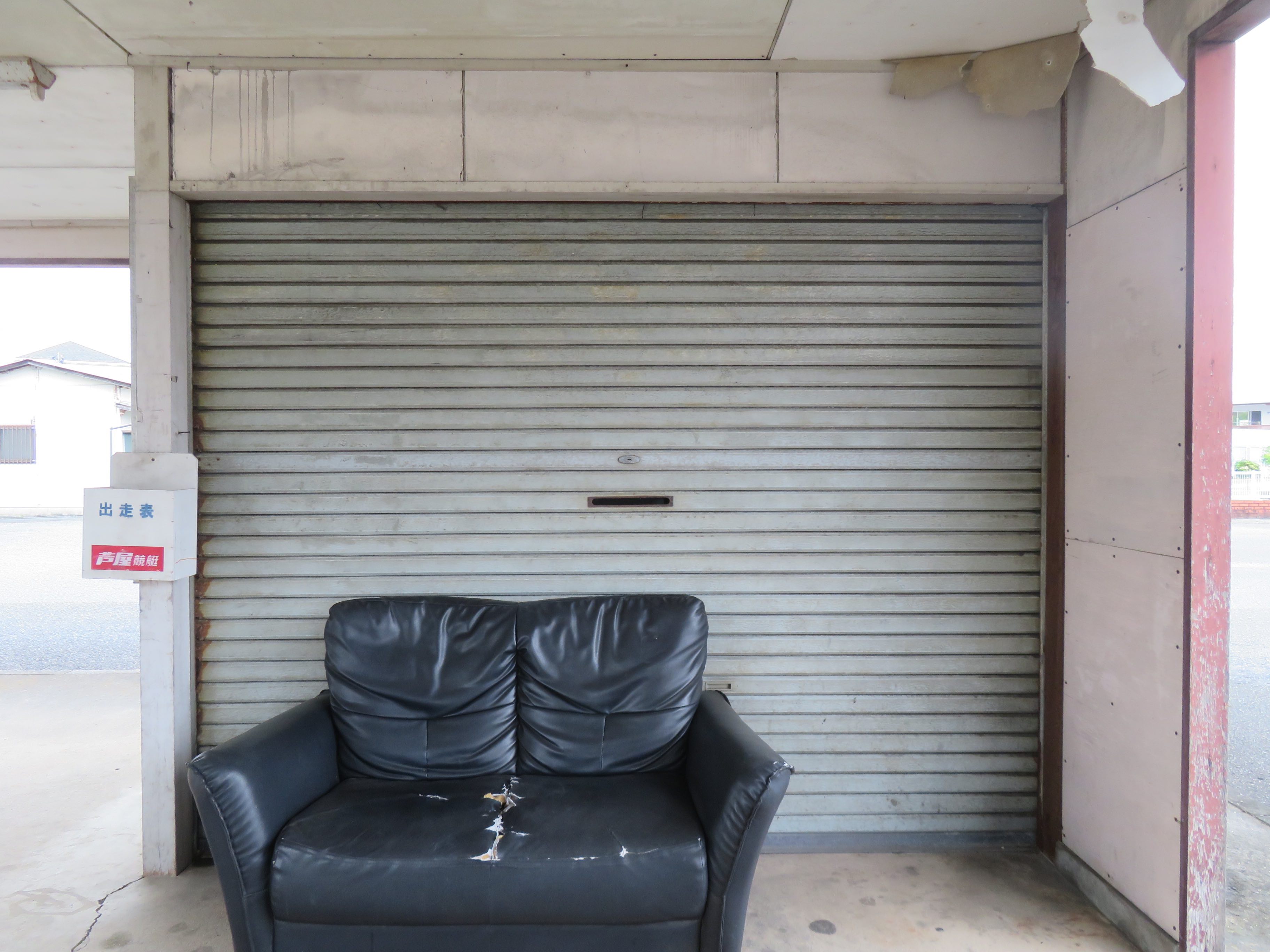 バスを詰め込めば数十台は停められそうな広い敷地に、ぽつんと小さな待合所が残っています。