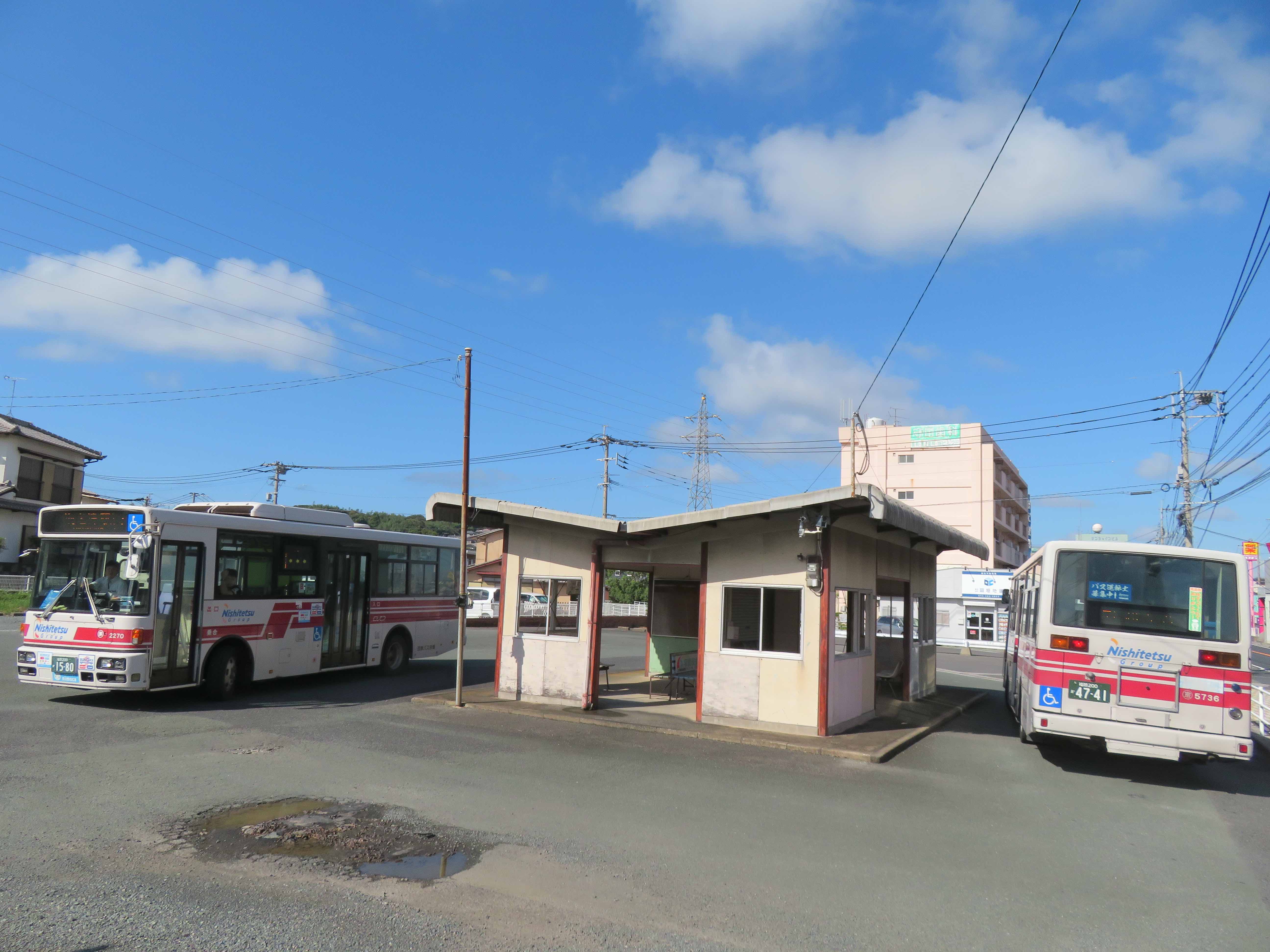 そんな歴史のある「20」が、まだ福岡と北九州を繋いでいた頃、頻繁にバスが発着していたのだろうな、という雰囲気をたたえているのが、海老津の発着所です。バス停名称としては「海老津」なのですが、駅と区別するため、以下「海老津発着所」と呼ばせてください。