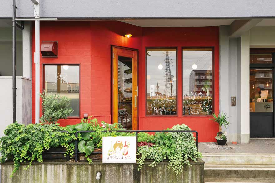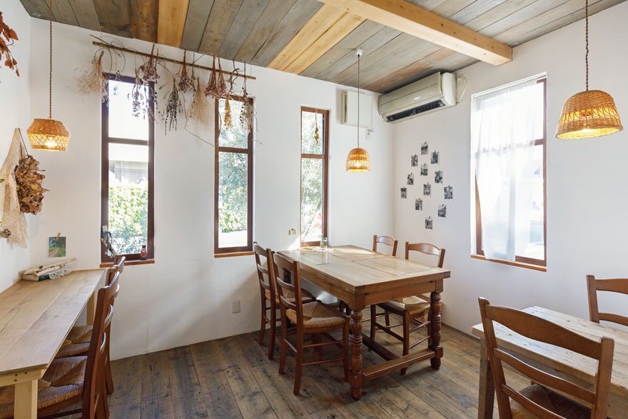 小麦アレルギーがある店主の高山愛理さんは、「アレルギーがあっても安心して食事ができる店を作りたい」との思いから、姉妹でお店を開業。壁や外壁、テーブルなどの塗装は、店主の姉妹2人と仲間で自ら手掛けたそう。