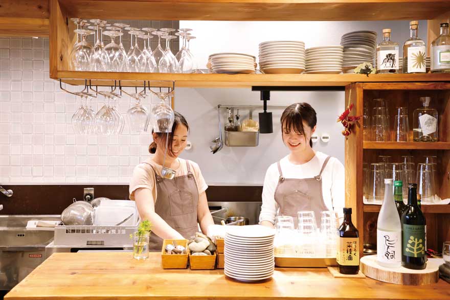 お店で使う野菜は、姉妹の地元・碧南市の農家から仕入れています。しょうゆやみりんなどの調味料も、三河地方の技法を守り抜いている名品をセレクト。料理の一つひとつにこだわりが感じられます。