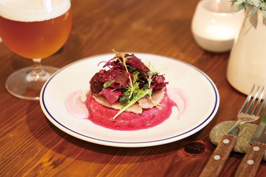 「カツオとビーツ 焼きなすのマリネ」(1800円)
