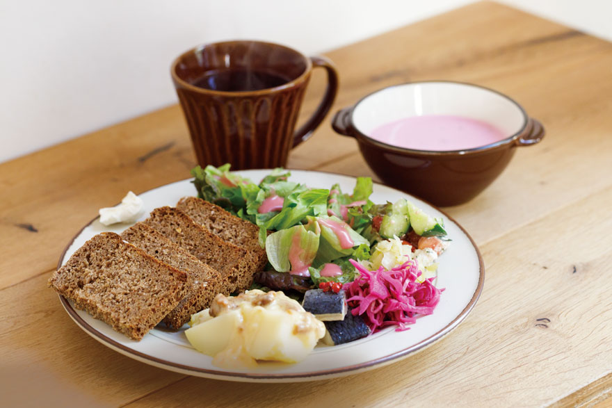メニューは伝統料理やスイーツをはじめ、現地から輸入したハーブティーなどの材料を使って現地の味を伝えています。「ラトビアプレート」は、ライ麦パンや杏子茸のソースをかけたジャガイモ、ニシンの酢漬けのワンディッシュ。