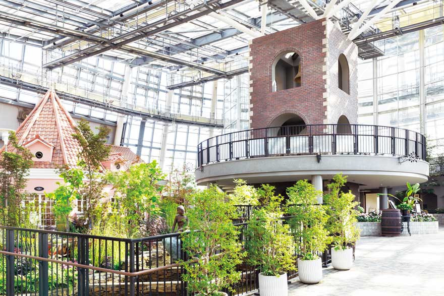 恋人の聖地にも認定されている園内。大温室では、「しあわせの泉コイントス体験」や床のタイルから隠れハートを探して、恋愛祈願ができます。