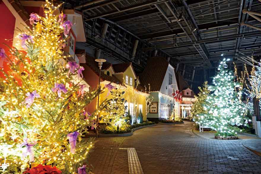 「ウィンターフェスティバル」期間中はクリスマスフラワーショーが開催され、装飾もクリスマス仕様に一変!温室内は日中もイルミネーションが灯り、昼と夜のそれぞれ違う北欧の風景が広がります。「クリスマスフラワーショー」では、北欧の街並みとイルミネーションが調和し、ロマンティックで見応えのある演出!