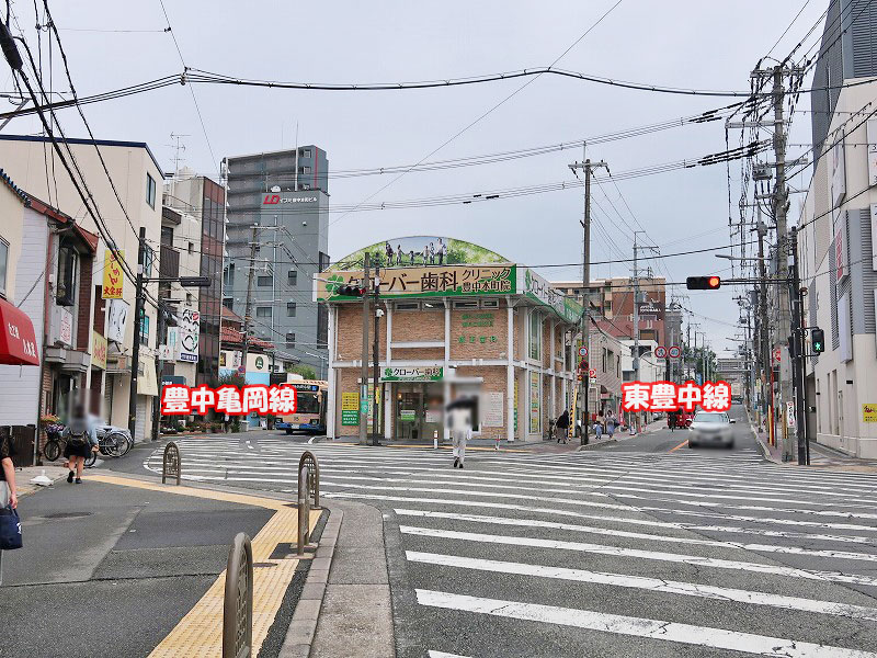 豊中駅近くのスクランブル交差点付近です。