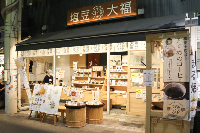 その直営店「すゞめ 近江町市場店」では、名物の塩豆大福をはじめとした和菓子やおかきなどを販売し、観光客にも地元客にも人気です。
