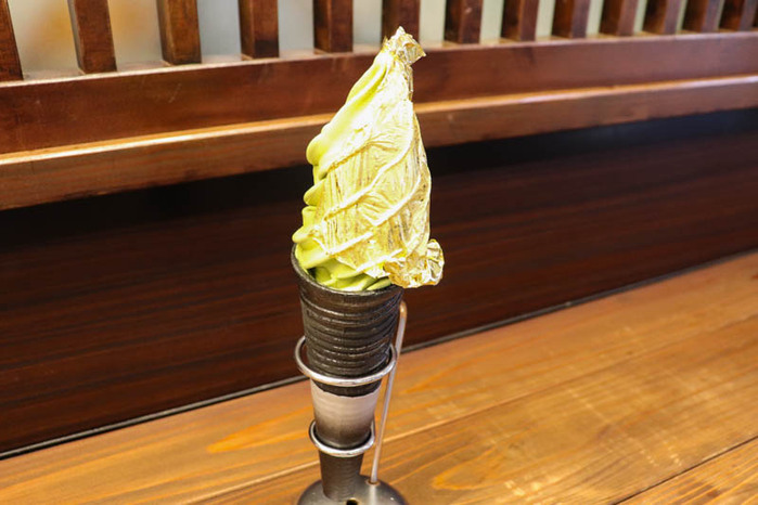 金箔が添えられた、金沢らしい贅沢ソフトクリームです。