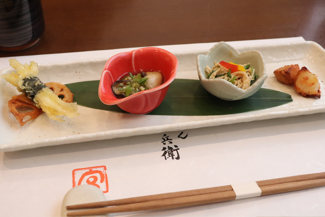 1番左には白魚の揚げ物、そしてその隣には牡蠣がありました。想像以上の豪華な旬の食材に嬉しくなりました!