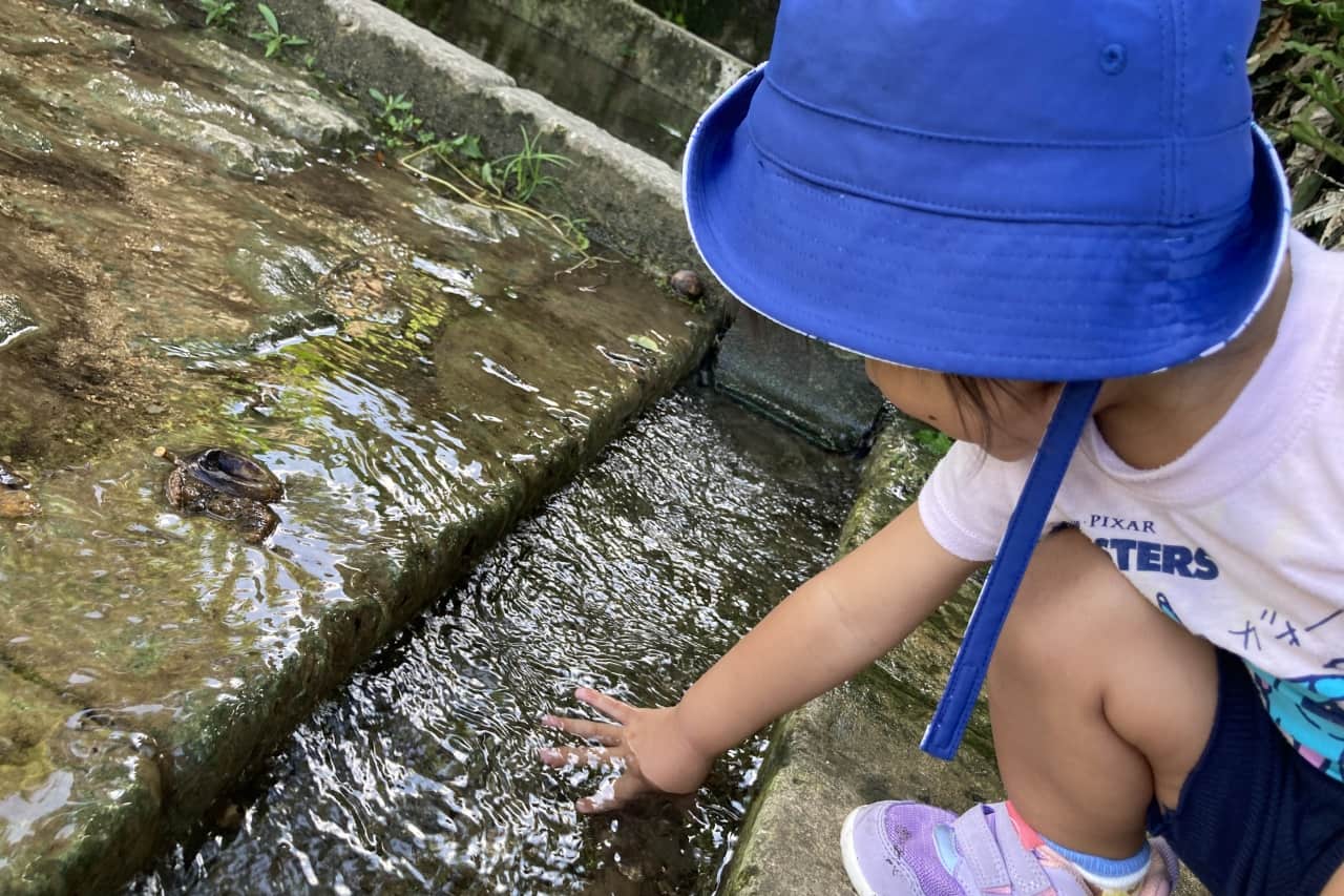 思ったよりも水量もたっぷり!じゃぶじゃぶ流れてくるお水に大興奮の娘。ご想像どおり、直後に靴ごとお水にじゃぼん。ちびっこを連れてくるときにはお着替えを持ってくるのを強く推奨します!