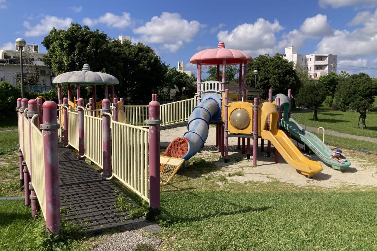 住宅街のオアシス!子どもが大満足の遊具・広場あり!湧水が流れる池には魚も住む「白川公園」(しらかわこうえん)(沖縄市)