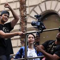 白のトップスを重ね着したら、上からジャケットを肩掛けしてみて!