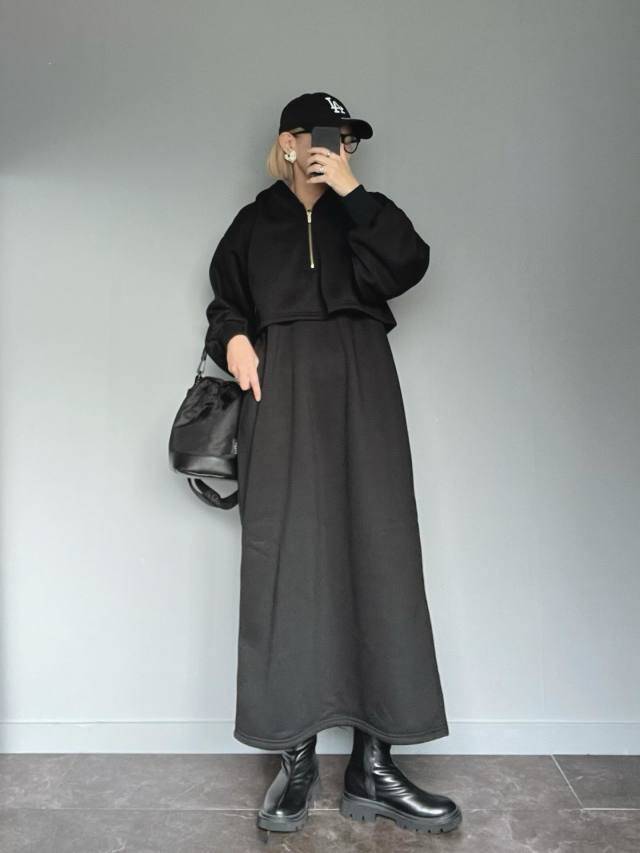 【11月編】老け見えしない黒ワンピースコーデ②カジュアルなオールブラックコーデ
