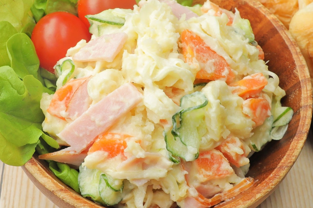 マヨネーズだけでも味が決まりやすく、具材のハム・きゅうり・にんじんにも自然になじむので、“ちょい足しするだけ”でワンランク上のポテサラになります。
