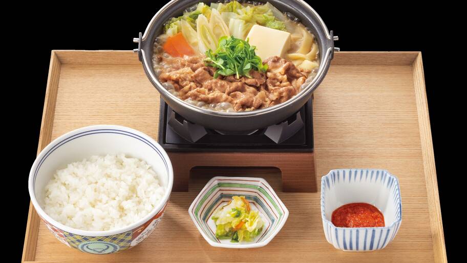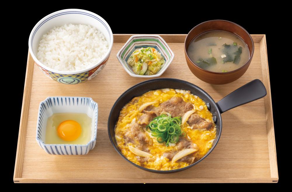 吉野家秘伝のたれで煮込んだ牛肉を玉子2個でとじ、特製すきやきだれを加えた贅沢な丼。さらに生玉子1個が添えてあり、濃厚にもまろやかにも味わうことができます。