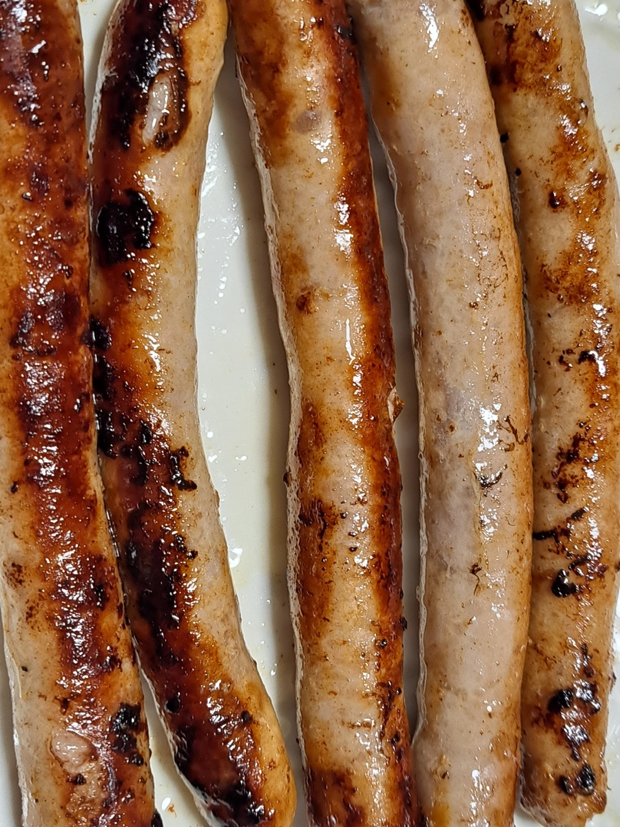 ボイル加工されていない生肉を詰めた状態の新鮮なソーセージです。