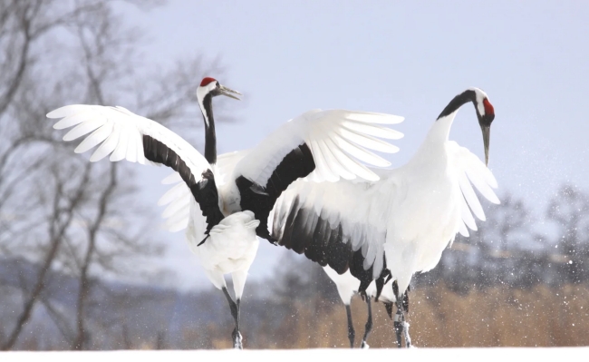 真っ白な雪原に舞うタンチョウは冬の風物詩とされ、“タンチョウの白は雪よりも白く美しい”といわれています。