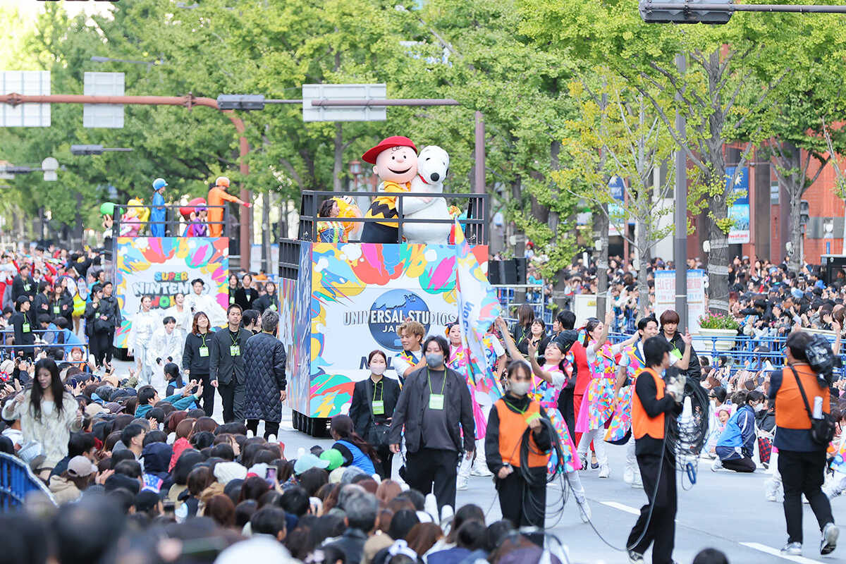 ユニバーサル・スタジオ・ジャパン(USJ)は、開業25周年を記念した取り組みの第一弾として参加。綾小路麗華や「ウォーターワールド」のディーコンをはじめ、「スーパー・ニンテンドー・ワールド」からマリオやルイージ、さらにエルモやスヌーピーなど、パークの人気キャラクターたちとクルー約100人が登場した。歴代エンターテインメント・プログラムのテーマ曲に合わせ、多彩なショーを繰り広げ、観客を魅了した。