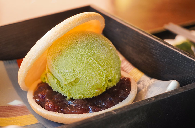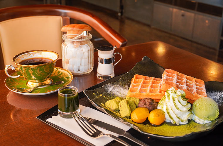 隠し味にアーモンドプードルを配合したオリジナルのミックス粉が味の決め手となる自家製ワッフル『和っふる』は、抹茶味とほうじ茶味の2種類がラインアップ。どちらも日本橋にあるお茶専門店「宇治園」の茶葉を使用した、こだわりの逸品です。