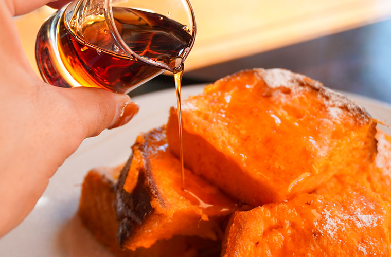 そこにメイプルシロップをたんまりかければ、贅沢感は一層アップ!しっとり染み込む甘い香りと、バターの香ばしさが重なり合い、口いっぱいに幸せが広がります。