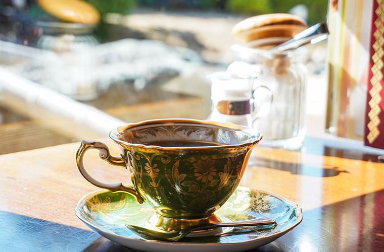 日常の喧騒を離れ、心を休める場所「珈集」。日本庭園の緑を映すカップの中で、自家焙煎コーヒーが静かに湯気を立てる。そんな心地良さを求めて、訪れてみませんか?