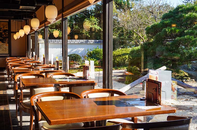 大きな窓からは、四季折々の表情を見せる日本庭園を一望できます。温かな陽の光が差し込む店内は、やわらかな空気に包まれた心地よい空間。席数も多く、隣席との間隔にもゆとりがあるため、周囲を気にせず会話や食事を楽しむことができます。つい時間を忘れて、気づけば数時間も過ごしてしまう、そんな心地よさも「珈集」の魅力の一つです。