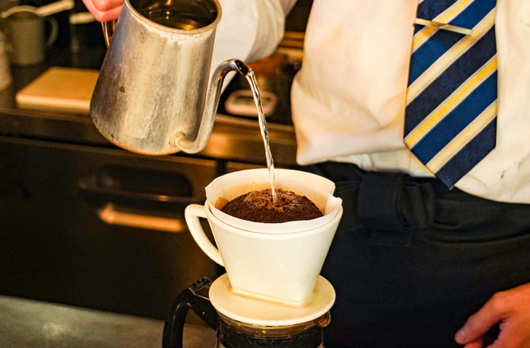 新鮮なコーヒー豆の魅力を引き出せるかどうかは、淹(い)れ方次第。スタッフが一杯ずつ丁寧にハンドドリップし、香りと風味を最大限に引き立てます。