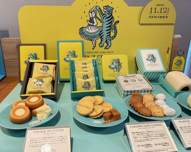 “塩”をテーマにした新洋菓子ブランド「ソルトラ」では、淡路島の藻塩を使ったスイーツが登場。サクサク食感と塩キャラメルのハーモニーが楽しい「キャラメルサンドクッキー」、北海道産小豆の粒あん入り「ロールケーキ」、大阪産さつまいも「夢シルク」の旨みを閉じ込めた「カタラーナ」、サブレの詰合せなど、おしゃれなパッケージも魅力で手土産にぴったりです。