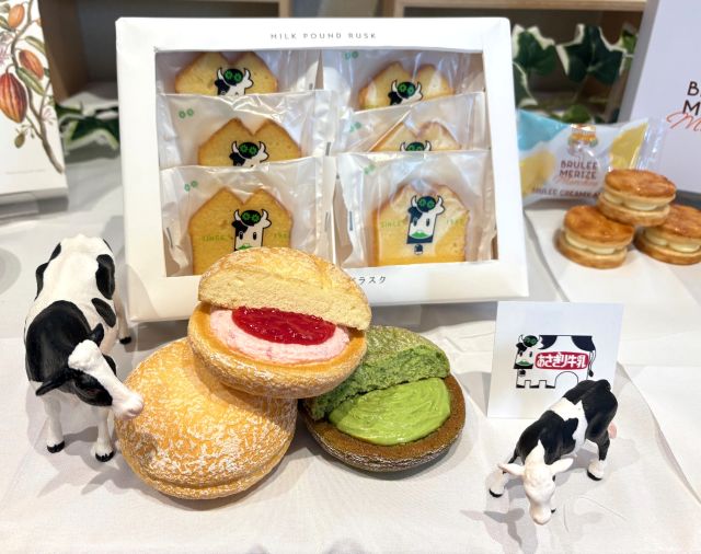 静岡県・朝霧高原の牛乳をたっぷり使ったミルクスイーツショップ。「あさぎり牛乳」は、牛乳本来のおいしさをシンプルに堪能できる一本。2層仕立てのチーズケーキ「あさぎりフロマージュケーキ」など、多彩なラインナップも魅力です。イートインで味わえる「あさぎり牛乳ソフト」もお見逃しなく。