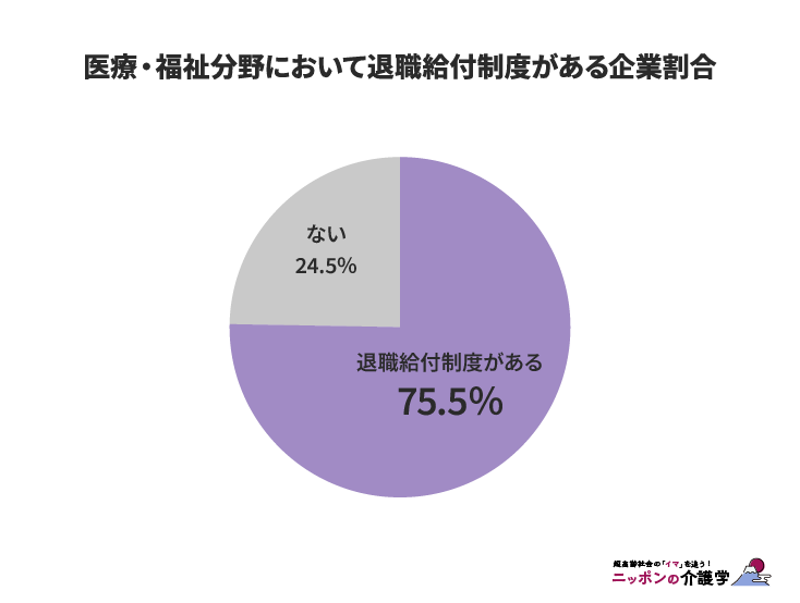 令和4年度の調査によれば、医療・福祉分野の企業では75.5%が退職金制度を設けており、全産業平均を下回っています。