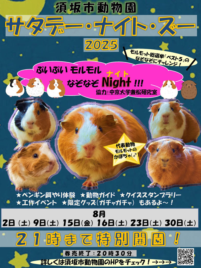 今年のテーマは「ぷいぷいモルモルなぞなぞNight」。今年度の代表動物のモルモットのかぼちゃくんが率いて夏の夜の動物園を盛り上げます。