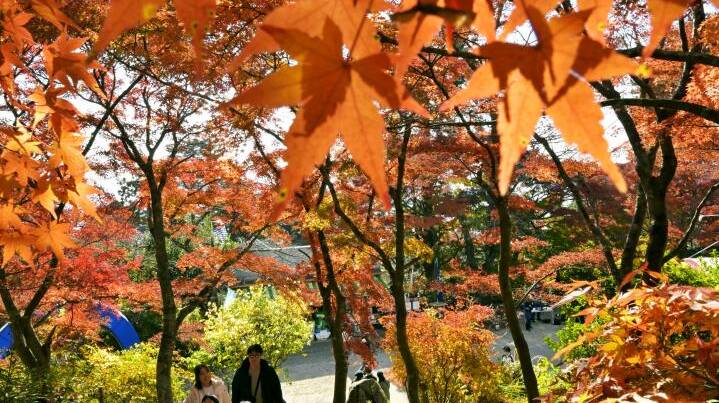 山全体が世界遺産として登録されており、その雄大な景観を楽しもうと、見頃の時期には県内外から多くの人が訪れる関西きっての紅葉スポット。