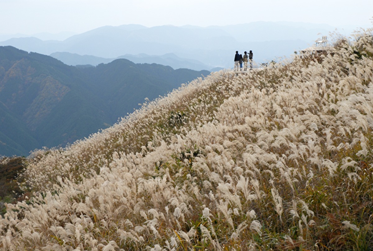10月中旬~11月下旬には、黄金にたなびく絶景が広がるススキの名所となる。